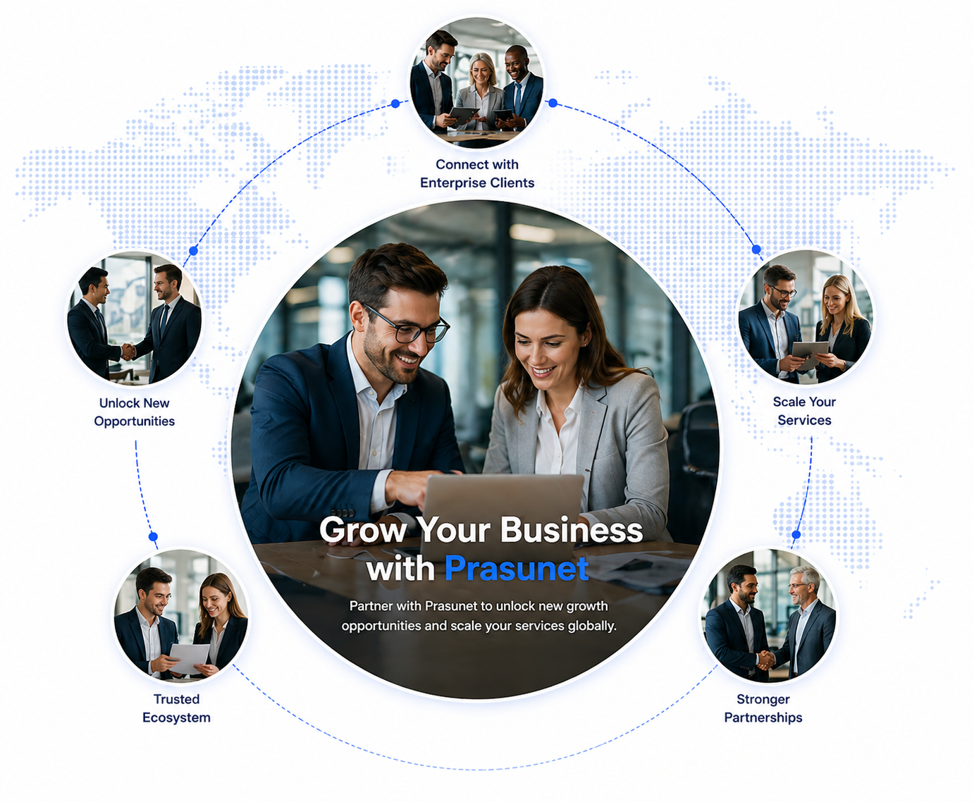 Partner with Prasunet to unlock new growth opportunities, connect with enterprise clients, and scale your services through a trusted digital ecosystem.
